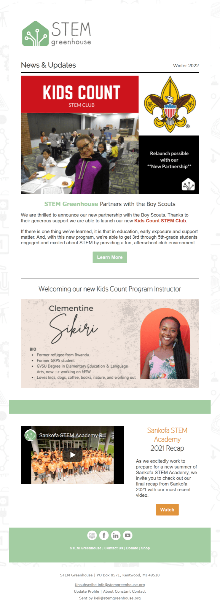 Interested in interviewing a STEM Greenhouse employee? Want to read our recent features? Looking for our brand kit? Missed a past newsletter? Here’s everything you need to stay up-to-date.